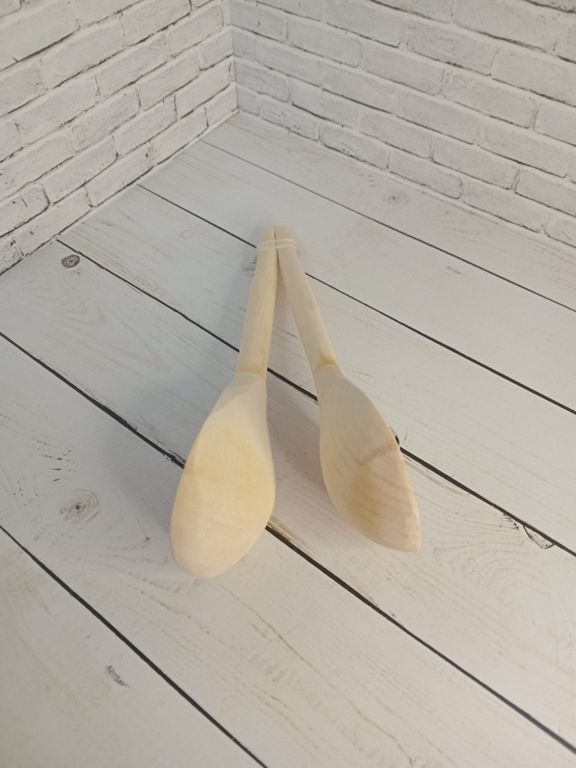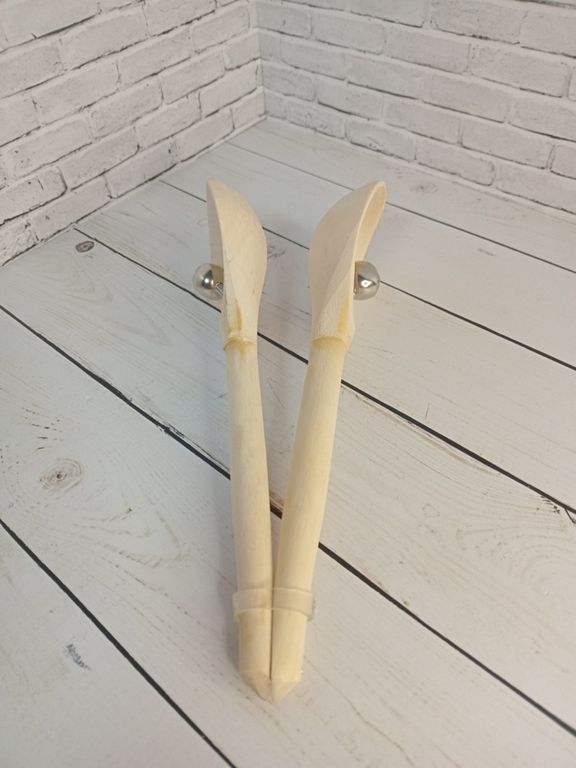 Ложки цельноточенные деревянные музыкальные с бубенчиками, с толстыми стенками и глубиной черпака около 1,5 см.