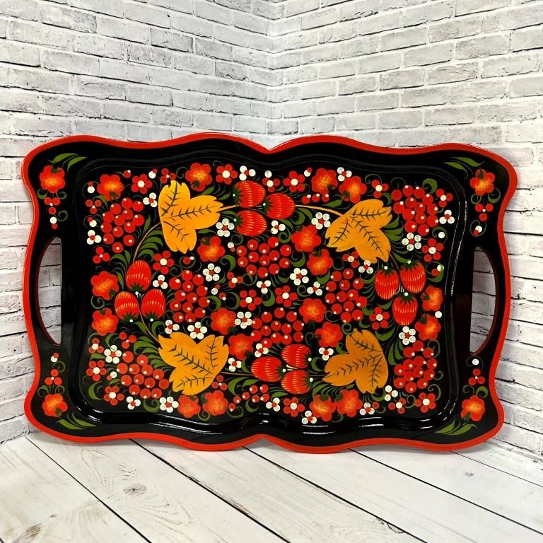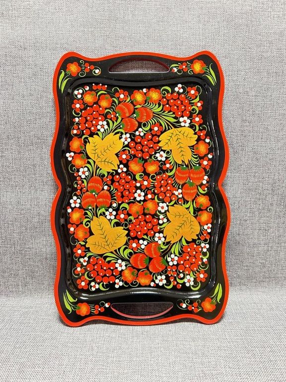 - Поднос расписан вручную, и покрыт прочным прозрачным лаком.