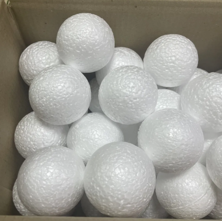 Размеры пенопластовых шаров для творчества есть самые разные, от маленьких до больших. Купить шары из пенопласта любого размера можно на нашем сайте. В наличии шары-заготовки из пенопласта на елку с петлей. Материалом для изготовления шаров служит плотный пенопласт марки М25 и М35. Изделия вырезаются из цельного куска и имеют небольшую ребристость на поверхности. Используется только качественный пенопласт, который не крошится и не осыпается. Он полностью безопасен, не имеет острых кромок и подходит для детского рукоделия.